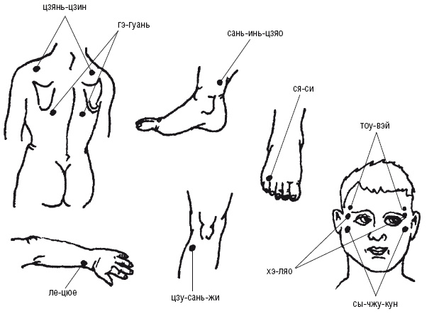 Рис. 47. Методика точечного массажа при повышенном артериальном давлении