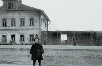 Наташа Попова на фоне дома 164 по проспекту Красной Армии (до 1934 года ул. Переяславская, д. 28), принадлежавшего с 1915 по 1928 год ее бабушке Поповой Анне Никитичне. Фото начала 1950-х годов