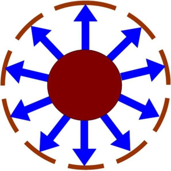 Понравится ли вам (ядру) такой способ? В лучшем случае вас травмируют. Мы действовали на орех снаружи. Значит, усилия необходимо создавать не снаружи, а изнутри (мы применили инверсию ). У вас самого для этого сил нет. Вы же ядро. Очевидно, нужно привлекать внешние силы (опять использовали инверсию ). Причем, как должны быть направлены эти силы? Безусловно, усилия должны быть направлены от ядра на внутреннюю поверхность скорлупы (рис. 3.5). И снова мы использовали прием инверсия . Рис. 3.5. Воздействия на орех изнутри