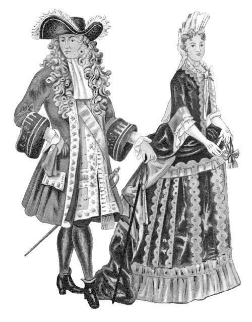 Людовик XIV и французская дворянка (16801700) старинная иллюстрация от Meyers Konversations-Lexikon, 1897 год