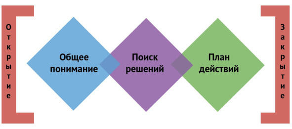 Рассмотрим каждый этап встречи, его задачи и результат, к которому приводит фасилитатор группу по окончании этапа.