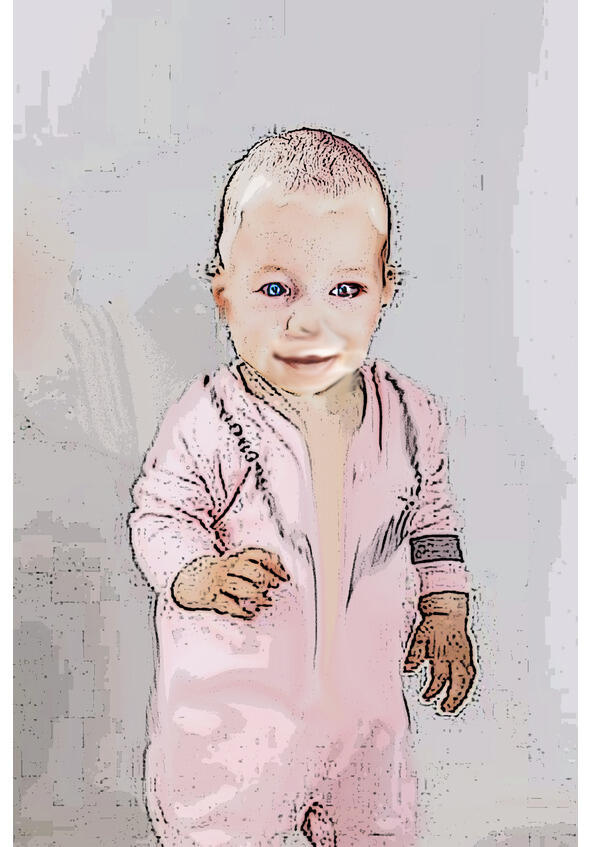 Да, странно он смотрелся крошечный, в свободных ползунках и в распашонке. В таком стоячем положении он был похож на механическую куклу.