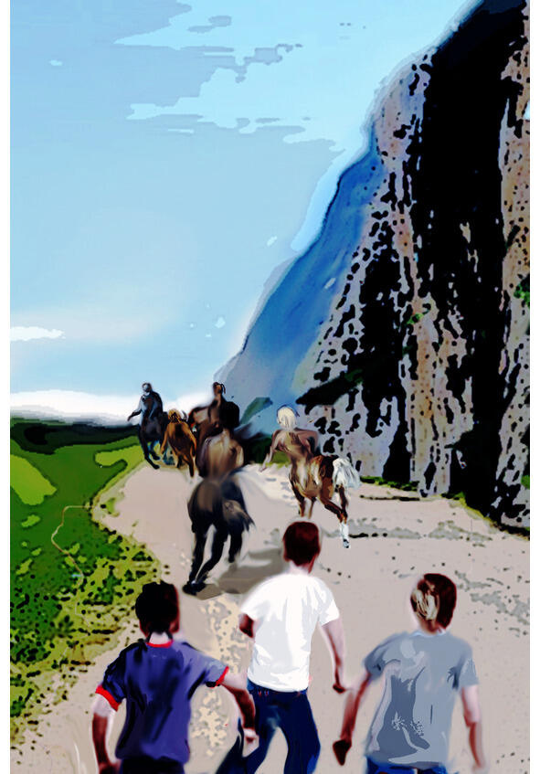 Через полчаса я, Вадим, Игорь, кентавры Васька и Данилка стояли на знакомой до боли местности. Справа была почти вертикальная скальная стена со знакомой пещерой. В той пещере мы когда-то прятались от кентавров, которых первое время ужасно боялись. Слева неторопливо несла свои воды широченная река. Навстречу нам с радостными сияющими лицами скакали кентавры. Мы сразу узнали встречающих.