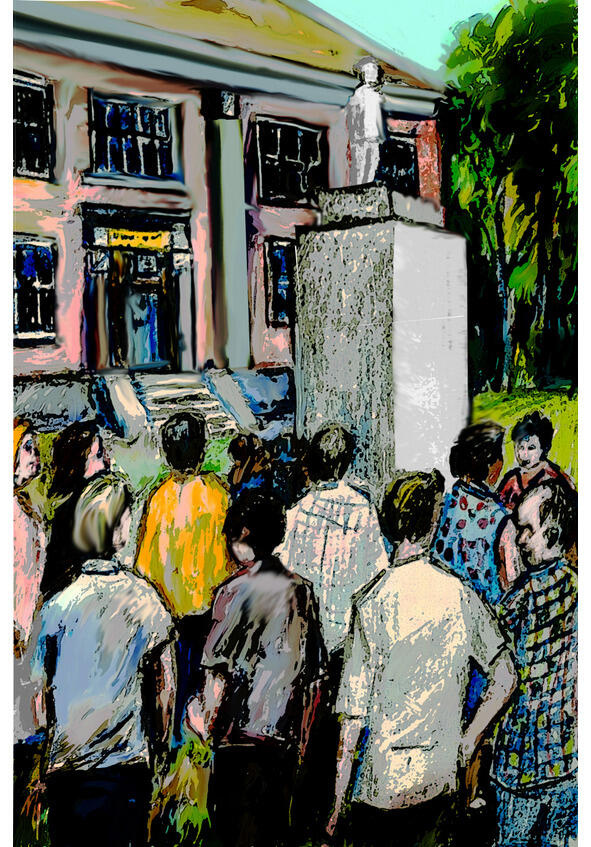 Солнечный июньский день. Площадь перед входом в нашу старую школу. Памятник Данилке посреди площади. Трудно было сосчитать, сколько там собралось людей. Кого там только не было. Люди приехали из самых отдалённых мест.