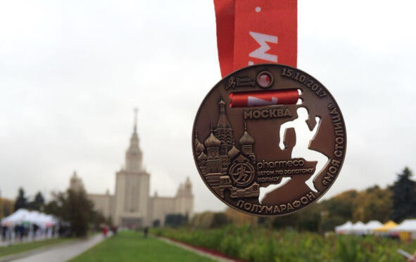 Я пошла сделала гравировку на своей медали с указанием своего имени и времени забега. Пробежали мы за 2ч 23 мин. Медаль имеет уникальный дизайн, её получает каждый финишер. Отличием служит только цвет ленты в зависимости от дистанции. Это была моя первая медаль в жизни за спортивные достижения. Я не верила своим глазам. Гордость и счастье переполняли меня.