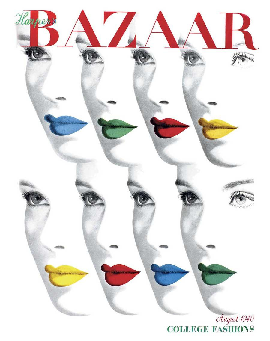Модные журналы стали важным инструментом, с помощью которых косметика вошла в повседневную жизнь женщин. На каждой обложке отныне была модель с ярким макияжем (Harpers Bazaar, август 1940 г.).