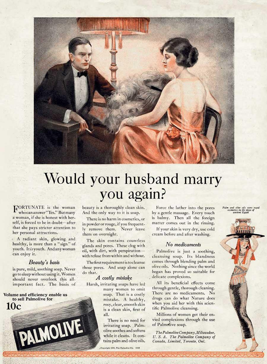 Чрезмерно негативная, пренебрежительная и снисходительная по отношению к женщинам реклама, которая старалась затронуть самые уязвимые места, начала появляться в 1920-х и продержалась вплоть до 1960-х, когда западный мир захлестнула вторая волна феминизма. Хотя многие считают, что такой уничижительно-угрожающий посыл (хоть и в менее явном виде) применяется и сегодня