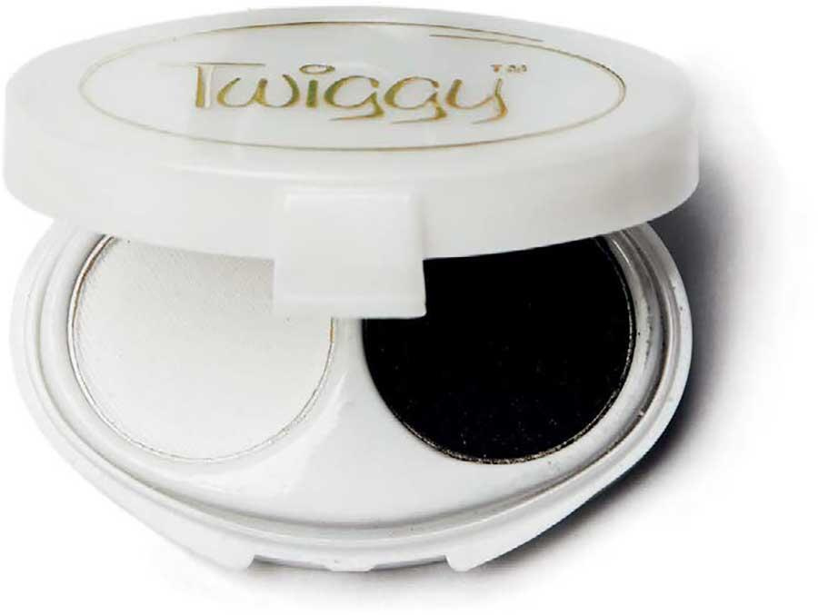 Британская модель Твигги, чей макияж глаз стал культовым в сотрудничестве с Yardley создала линию декоративной косметики для продажи в США. Туда входили накладные ресницы и эта черно-белая «двойка» матовых теней