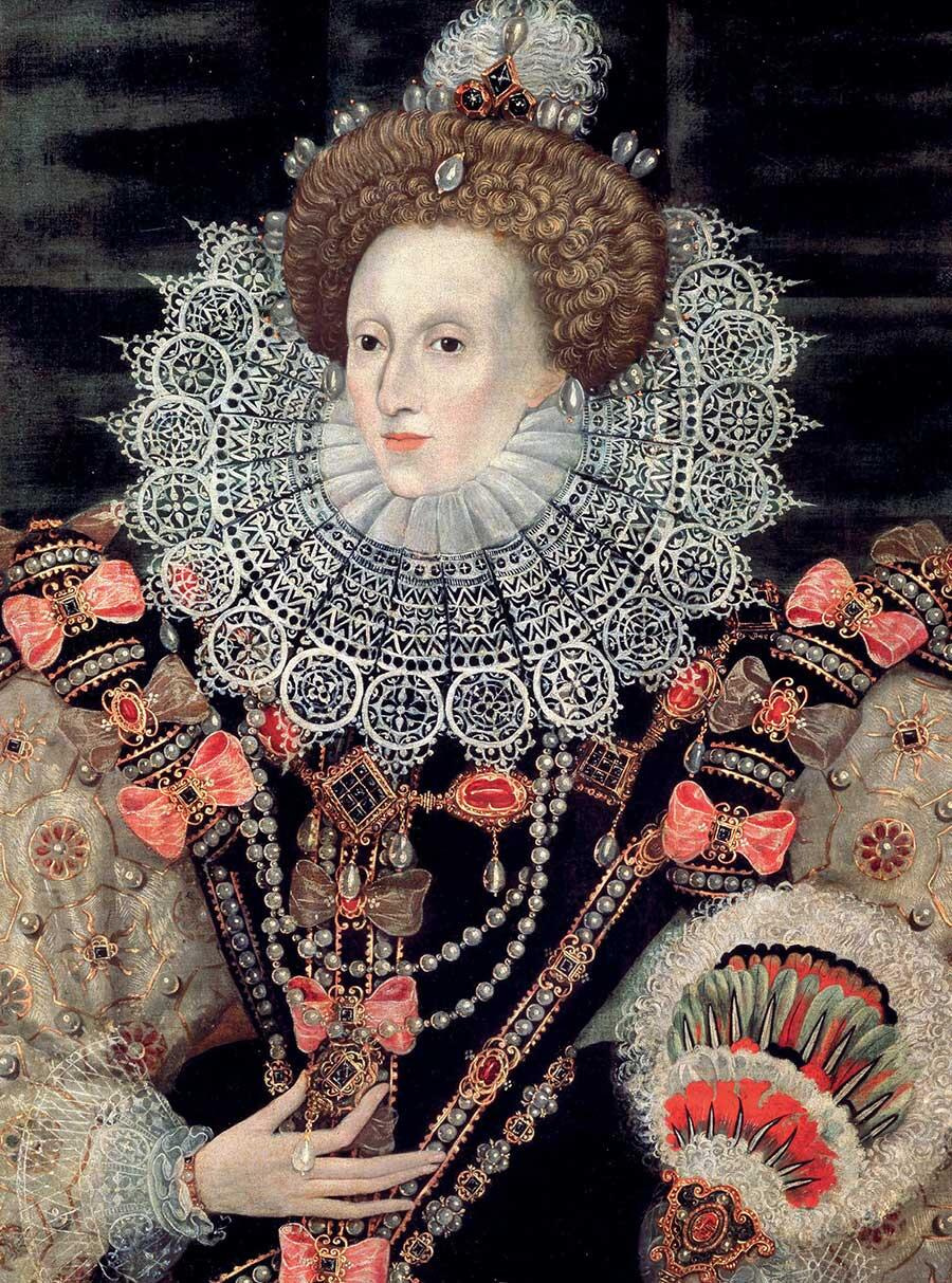 Рассматривая портреты конца XVI в., можно предположить, что модные аристократки того времени наносили румяна в форме перевернутого треугольника начиная от яблочек щек и сужая вниз, к подбородку. На картинах цвет выглядит ровным и хорошо растушеванным, но в реальной жизни такой макияж, скорее всего, был гораздо более ярким и агрессивным.