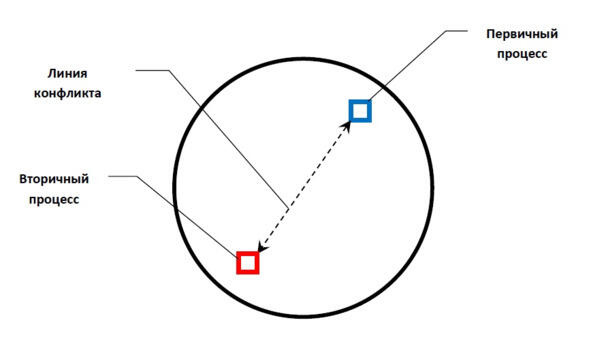 Каким бы ни было конкретное содержание первичного и вторичного процесса, в случае, когда вторичный процесс маргинализуется, можно с уверенностью говорить о наличии внутреннего конфликта. Вариантов первичных и вторичных процессов у человека множество, значит и внутренних конфликтов немало.