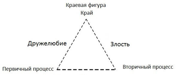 Первичный и вторичный процессы части единого целого, но вследствие процессов самоидентификации и маргинализации противопоставлены друг другу и находятся в конфликте.