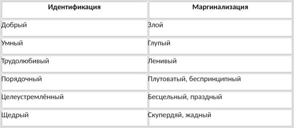 Если человек считает их важными для себя, к ним стремится и себя с ними ассоциирует, то маргинализует всё, что не укладывается в эти представление о себе. Используя простые антонимы, мы даже можем представить отрицаемые проявления и части психики «хорошего парня».
