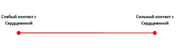 Чтобы лучше понять весь спектр целей и их влияние на практику самовыслеживания, представим ось проявленности Сердцевины в нашей жизни. Эта шкала характеризует наше умение слышать и принимать Зов нашего Сердца.