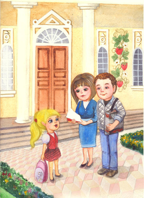 Девочка взяла ранец и решительно подошла к огромным дверям Дома Культуры.