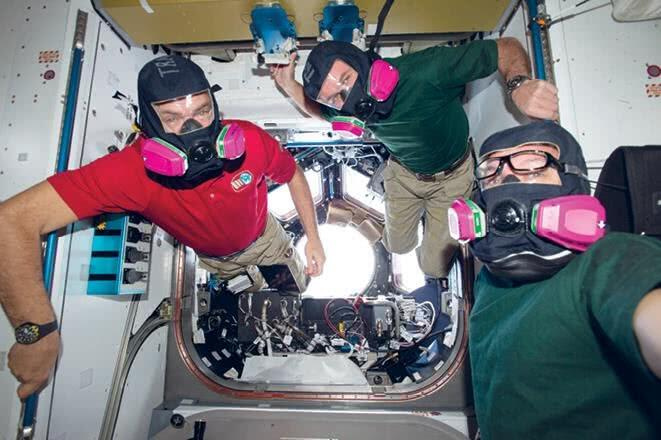 Космонавты на орбите примеряют аварийные маски