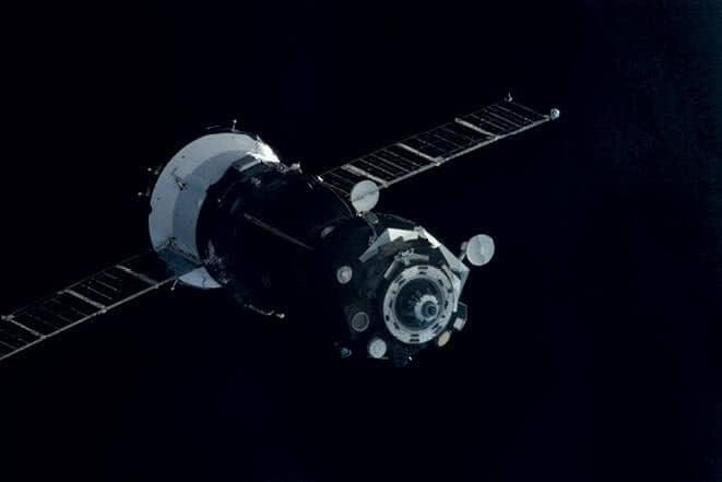 Приборно-агрегатный отсек присоединен к спускаемому аппарату снизу с помощью открытой ферменной конструкции. На ней расположены устройства для разделения отсеков, радиоантенны, разъемы для подключения наземного оборудования перед запуском и баллоны, которые снабжают нас кислородом. Верхняя часть приборно-агрегатного отсека похожа на большой барабан, она герметична и заполнена инертным газом. Туда конструкторы поместили стойки с радиооборудованием, телеметрическими системами, аккумуляторами и блоками электропитания, модулями управления терморегулированием, движением и ориентацией корабля в пространстве. В нижней негерметичной части приборно-агрегатного отсека располагается двигательная секция, в которой находятся топливные баки, ракетные двигатели управления ориентацией, сближающе-корректирующий двигатель и радиаторы, предназначенные для сброса избыточного тепла излучением в космическое пространство. Кроме того, на приборно-агрегатном отсеке закреплены панели солнечных батарей, которые под головным обтекателем сложены, а раскрываются после выхода на орбиту.