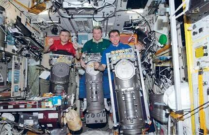 Воздух тоже привозят на грузовиках. Станцию нельзя назвать абсолютно герметичной, постоянно происходят утечки. При этом запас кислорода у нас возобновляется системой «Электрон-ВМ». Она простым электролизом разлагает воду на кислород и водород; при этом водород сразу стравливается в космос, а кислород поступает в атмосферу станции. У американцев есть аналогичная система, называемая незатейливо Oxygen Generator System. Выделяемый углекислый газ поглощается системой «Воздух». На всякий случай в комплекте имеются кислородные баллоны и кислородные химические шашки. Проблема в том, что мы не можем восстанавливать утраченный азот, поэтому его приходится доставлять с Земли в баллонах под давлением теми же «Прогрессами».