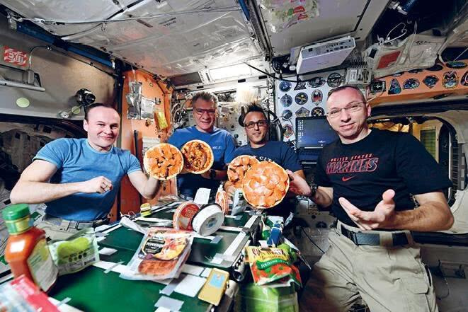 Бывают и особые случаи. Как-то раз Паоло Несполи проговорился во время сеанса связи с Хьюстоном, что соскучился по пицце. Вскоре прилетел грузовик «Лебедь», на котором ему прислали полный набор для производства пиццы: коржики, плавленый сыр, колбаса, оливки. В итоге получились у нас четыре нормальные пиццы, которые мы завернули в фольгу и запекли в электропечке. Паоло приготовил пиццу с артишоками, а я более классический вариант: пеперони, сыр и чесночная паста.