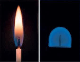 Слева пламя на Земле, справа пламя в невесомости (фотография NASA)