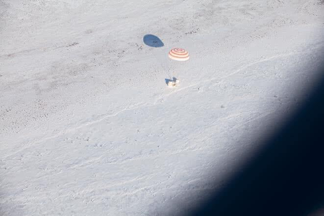 Спускаемый аппарат корабля «Союз МС-05» приземлился в заданном районе (фотография Андрея Шелепина /ЦПК)