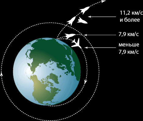 Очень большая. Но развивать ее можно постепенно, как и делает ракета, поднимаясь на космическую высоту. С какого-то момента скорость становится такой, что ракета выйдет на орбиту. Мысленный эксперимент поставил еще великий Исаак Ньютон. Представьте себе высочайшую гору, пик которой находится за пределами атмосферы. Вообразите пушку, установленную на самой ее вершине и стреляющую горизонтально. Чем мощнее заряд используется при выстреле, тем дальше от горы будет улетать ядро. Наконец при достижении некоторой мощности заряда ядро разовьет такую скорость, что не упадет на Землю вообще и будет вращаться вокруг нашей планеты. Фактически Ньютон описал искусственный спутник, а значение вычисленной им начальной скорости 7,91 км/с. Ее сегодня называют «первой космической».