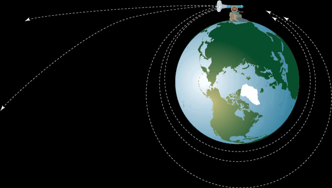Если говорить с физической точки зрения, то спутник на самом деле всё время падает под действием силы притяжения, но не может упасть, потому что земная поверхность как бы «убегает» от него за счет собственной кривизны. Вот если бы Земля была плоская, то спутники неизбежно падали бы на нее, пролетев какое-то расстояние. И понятно, что если бы движение спутника происходило не в вакууме, а в атмосфере, то он тоже упал бы, потому что молекулы воздуха при бесчисленных столкновениях затормозили бы его.