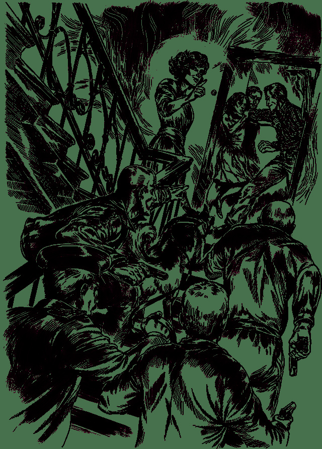 Мы протиснулись через покосившуюся дверь в теплый смрадный сумрак парадной. Наверху неразборчиво что-то бубнил мужской бас, а потом донесся мощный удар и треск безжалостно сломанной дверной притолоки. Мы взлетели на третий этаж и на мгновение остановились. Я высунулся из-за спин замерших Бодровых и одним взглядом окинул открывшуюся мизансцену: дверь квартиры выбита внутрь, щепки торчат из косяка на месте вылетевших петель, «американец» держит за горло тоненькую рыжую девушку с большими голубыми глазами, из-за плеча которой выглядывает Савва Ильинский с удивительным для ситуации выражением спокойного любопытства на лице. «Артистка» стояла на узкой лестничной клетке, развернувшись вполоборота к дверям, но, услышав наши шаги, обернулась. На ней было бордовое платье и крупные красные бусы на шее. Она весело подмигнула мне, как старому знакомому, и сказала: