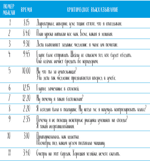 Чем больше нападений на самого себя вы запишете, тем лучше. Поздравьте себя с тем, что улавливаете как минимум десять уколов критика ежедневно.