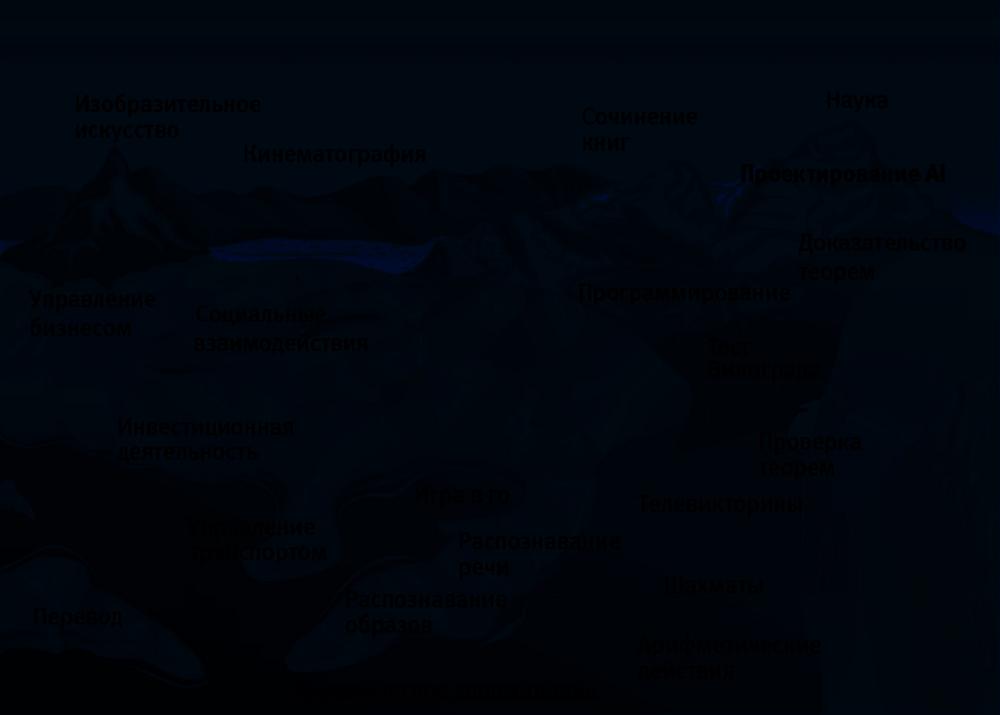 Компьютеры универсальные машины, и их потенциал равномерно покрывает безграничное разнообразие задач. Потенции людей, напротив, сосредоточены там, где от успеха зависит выживание, в более отдаленных областях они весьма слабы. Представьте себе ландшафт человеческих компетенций, где есть низины вроде арифметики и механической памяти, холмики вроде шахмат или доказательства теорем и горные пики, отмеченные указателями перемещение с места на место, координация движений рук и глаза, социальное взаимодействие. С совершенствованием компьютеров этот ландшафт словно наполняется водой: полвека назад она затопила низины, вымыв оттуда счетоводов и писцов, но оставив нас сухими. Сейчас вода дошла до холмиков, и обитатели наших аванпостов забеспокоились: куда бы им переместиться? Мы чувствуем себя в безопасности на своих пиках, но, учитывая скорость, с которой вода прибывает, она покроет и пики в ближайшие полвека. Я полагаю, нам уже пора начинать строить ковчеги и приучаться к жизни на плаву.