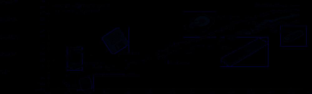 На протяжении шести последних десятилетий компьютерная память дешевела вдвое примерно каждые два года, чему соответствует снижение цены в тысячу раз на каждые двадцать лет. Один байт равен восьми битам. Данные предоставлены Джоном Мак-Каллемом (см. http://www.jcmit.net/memoryprice.htm, проверено 13.05.2018)