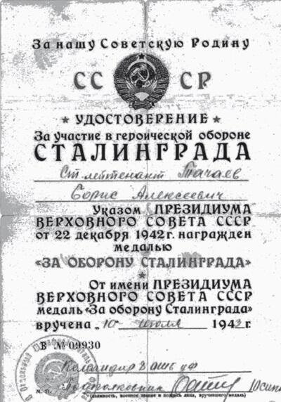 Фотокопия «Удостоверения за участие в героической обороне Сталинграда»