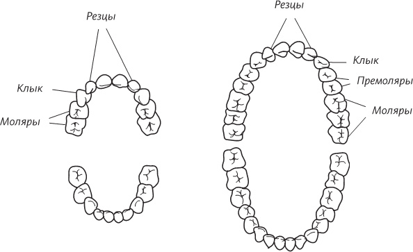 Сейчас мы едим мягкую, обработанную пищу, и наши зубы стираются не так быстро, как у предков, питание которых было более грубым. Достаточно сказать, что в хлебе часто попадалась мелкая пыль от каменных жерновов. Несмотря на то что эмаль это самое твердое и прочное вещество в человеческом организме, способное перетирать самую грубую пищу, она все же со временем изнашивается, обнажая дентин ядро зуба, и поэтому показателем возраста может служить степень стертости зубной эмали. Дентин обнажается в первую очередь на концах зубов, вдоль режущих краев резцов и на бугорках премоляров и моляров. Идут годы, у моляров постепенно стираются и исчезают бугорки жевательной поверхности. Поверхность становится ровной и представлена дентином, так как одновременно с бугорками стирается и эмаль, которая сохраняется лишь в виде ободка вокруг боковой поверхности. Зуб может стереться до такой степени, что эмаль полностью исчезает, а от зуба остается лишь небольшой выступ над корнем. Я современный человек, и мой рацион не такой грубый, каким он был бы, живи я несколько столетий назад. Тем не менее, когда я чищу зубы, я иногда смотрю на них в зеркало и вижу, что бугорки на коренных зубах пока выражены очень хорошо, но зато на краях резцов уже проступила узкая полоска дентина. То есть мои зубы медленно, но верно стираются. Так что имеет смысл и вам оценить состояние своих зубов.