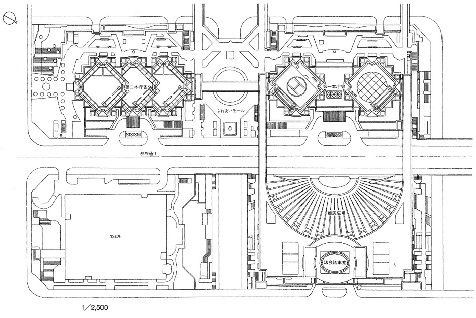 Знаменитый пример японского небоскреба, возведенного по сейсмоустойчивым технологиям, здание токийской мэрии, спроектированное К. Тангэ. Комплекс зданий токийской мэрии (См. вкл.: илл.48, 49), построенный по проекту Кэндзо Тангэ в 1991 г., на момент возведения был самым высоким в Японии. Главное здание, высотой 243 м, состоит из двух башен, Северной и Южной, и напоминает футуристический готический собор. 45-этажные башни имеют общее основание и единый объем, который разъединяется только на высоте 33-го этажа. По расчетам, комплекс токийской мэрии сможет выстоять даже при землетрясениях, столь частых на Японских островах, и выдержать удар стихии, равный по силе разрушения Великому землетрясению Канто 1923 г. Масштаб этой катастрофы был настолько огромен, что с тех пор землетрясение Канто стало точкой отсчета при измерении силы стихийного бедствия в Японии. Воздействие порывов ветра на постройку удалось сократить на треть из-за использования округлых форм с наветренной стороны и грубой текстуры с подветренной, а также с помощью наклона крыш высотных башен под углом 45 градусов. На 43-м этаже обеих башен располагаются общедоступные смотровые площадки, откуда открывается потрясающий вид на город, а в хорошую погоду (обычно осенью и зимой) видно даже знаменитую гору Фудзи.