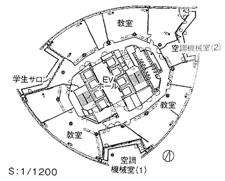 Mode-Gakuen Spiral Towers в нагое (20052008 гг., арх. бюро Nikken Sekkei). вверху фрагмент верхней части, внизу план
