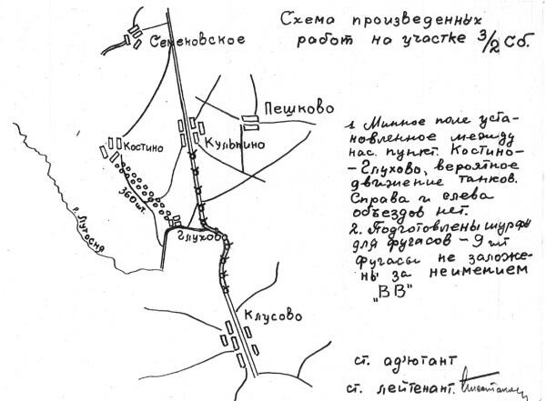 Схема минирования Рогачевского шоссе между Кульпино и Клусово и окрестностей.