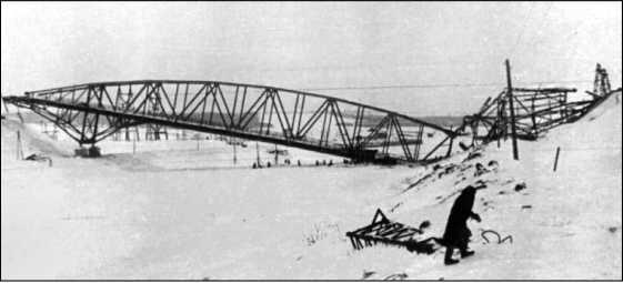 Взорванный шоссейный мост у г. Яхрома.