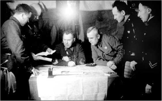 В штабе 1-й УдА. В центре командующий армией генерал-лейтенант В.И. Кузнецов.