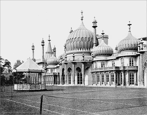 В те годы англичане увлеклись архитектурой недавно завоеванной Индии, и Георг потребовал от архитектора Джона Нэша дворец, достойный великих Могулов. Отделанный в белой гамме, украшенный минаретами и остроконечными куполами, Королевский павильон кажется иллюстрацией к «Тысяче и одной ночи». В то же время он был построен по последнему слову техники, с газовым освещением и центральным отоплением (причем топили так жарко, что гостям казалось, будто они очутились в настоящих тропиках!). Экзотическая обстановка не отвлекала принца-регента от политики: здесь он обсуждал участие Англии в наполеоновских войнах.