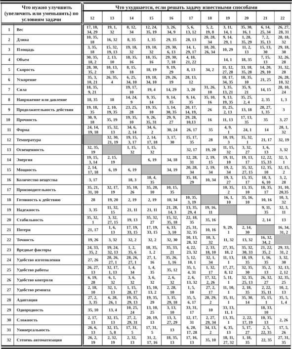 Таблица использования основных приемов устранения технических противоречий (продолжение)