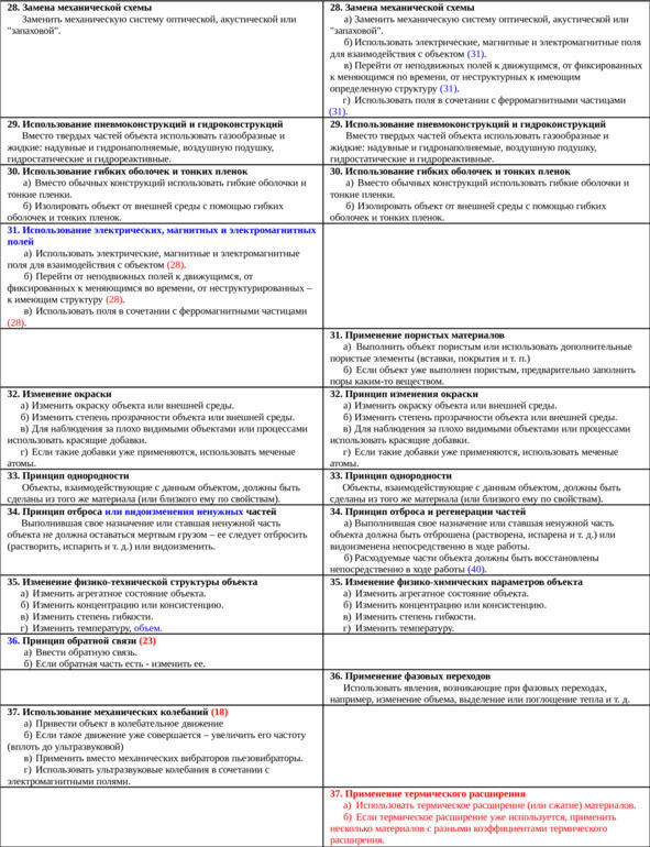 Сравнение приемов АРИЗ-65 с АРИЗ-68 (окончание)