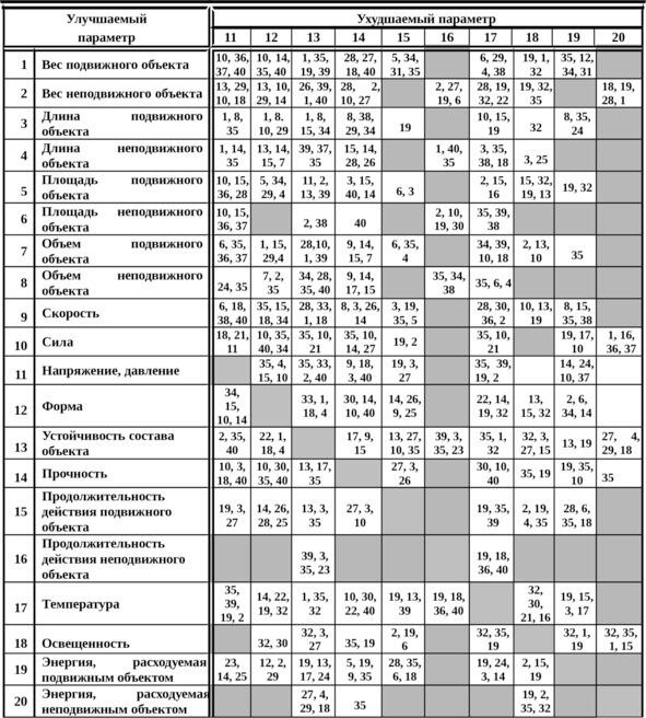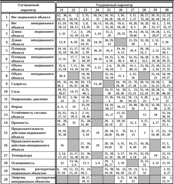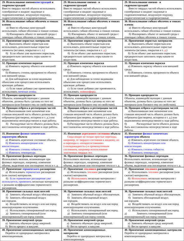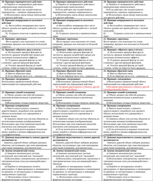 Таблица использования основных приемов устранения технических противоречий (окончание)