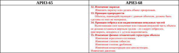 Сравнение приемов АРИЗ-65 с АРИЗ-68