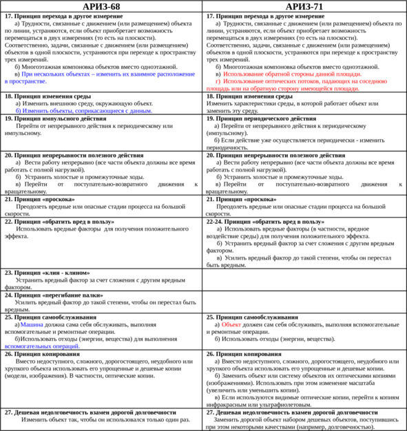 Сравнение приемов АРИЗ-68 с АРИЗ-71