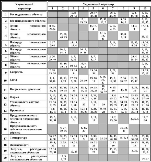 Таблица использования основных приемов устранения технических противоречий (продолжение)