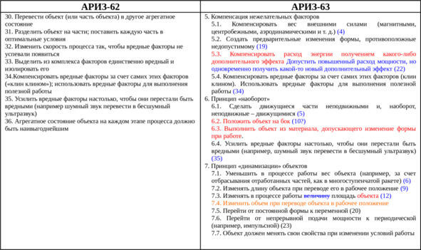 Сравнение приемов АРИЗ-62 с АРИЗ-63