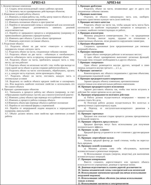 Сравнение приемов АРИЗ-63 с АРИЗ-64