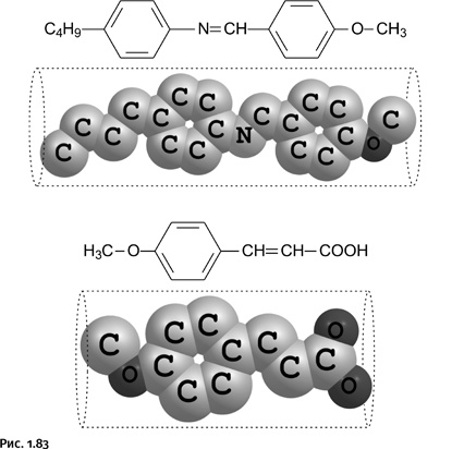 Ниже показаны другие стержнеобразные молекулы, способные переходить в жидкокристаллическое состояние, или, пользуясь научным языком, образовывать мезофазу (рис. 1.83).