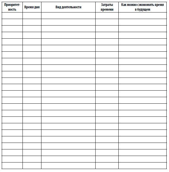 Являясь далеко не пустой тратой времени, пять минут, затраченные ежедневно на учет времени, представляют собой разумный вклад в более высокую производительность. Многие руководители говорили мне, что почти удвоили свою продуктивность к концу пятидневного контроля за временем.