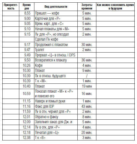 Помните, вы должны отмечать каждое переключение внимания от одного дела к другому. Даже десятисекундный телефонный разговор следует тщательно зарегистрировать и отметить время, когда он произошел.