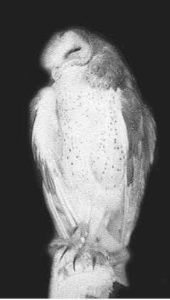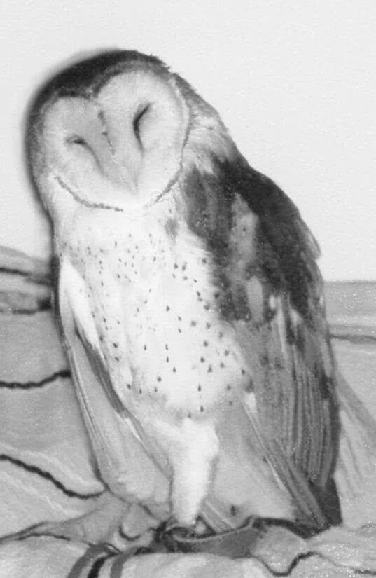 Уэсли в расслабленной позе на своем насесте, поджимает одну лапу.Стэйси ОБрайен.